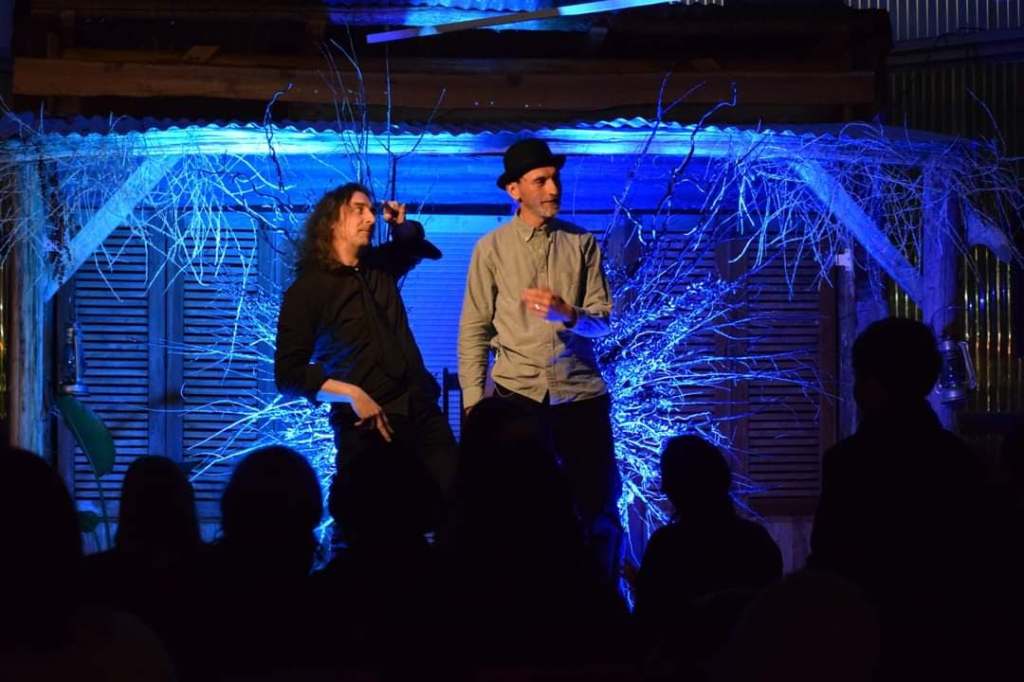 A collaboration between Miss Honey Child and Tamas Oszvald: an immersive spoken word performance based on traditional folk tales about Tricksters enhanced by music and food.